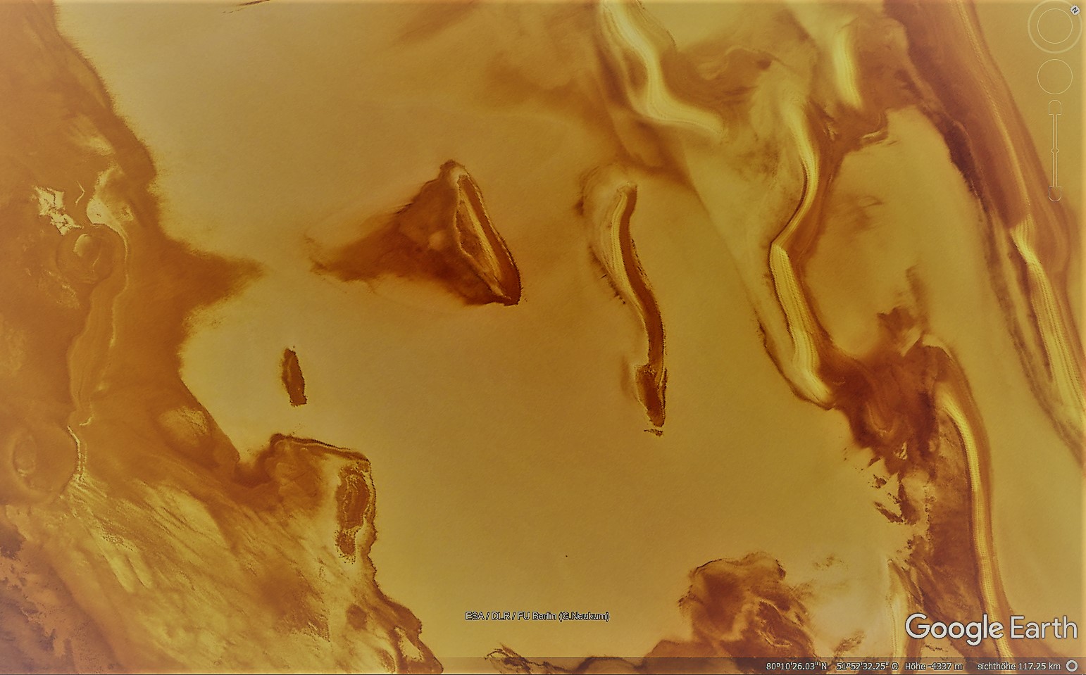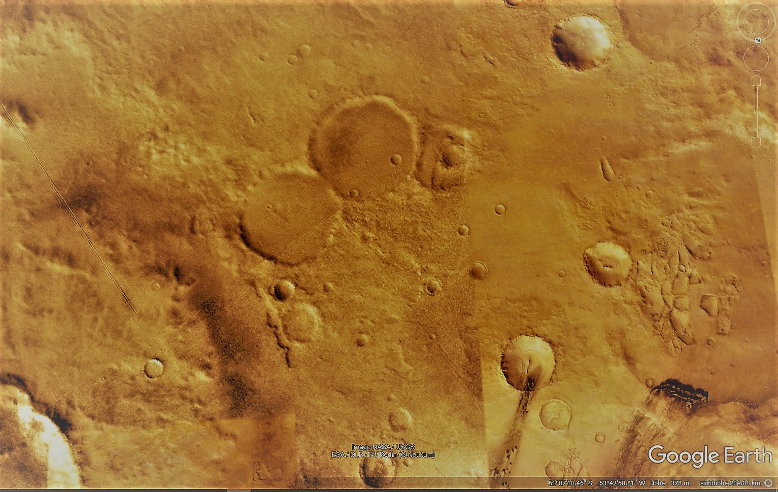Луна-Луной,а по Марсу тоже как-то всё непонятные скриншоты.Но,благодаря нашему уважаемому Google и его сервису GoogleEarth можно получше рассмотреть поверхность Марса.В принципе ничего особенного,тем более это "ничего"придаёт виртуальным исследователям столько много виртуальных сил для поисков чего-нибудь особенного.Самое главное - к рассмотрению особенного и неособенного,смотреть в оба глаза.Ниже будут скрины,может и не качественные,но с помощью фильтров вроде получилось получше.Рассказывать-что там можно увидеть,смысла просто нет.И в любом случае каждый увидит то что увидит сам.Немного напоминает структуру спила дерева,но не это главное.Скриншоты снизу,немного перехимичил,но...